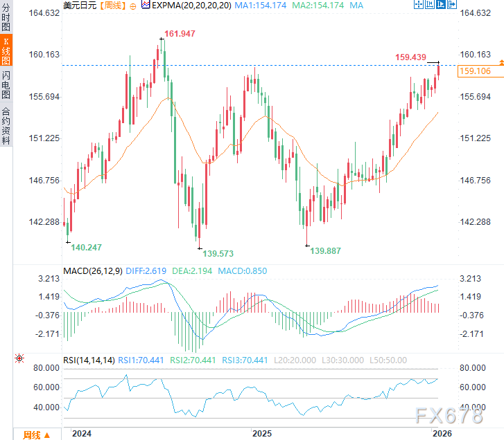 汇通财经APP讯——周三(1月14日)欧市时段,美元兑日元高位震荡,一度触及18个月高点159.44,现交投于159.10附近,这一走势凸显了政治动态如何通过财政方向的预期而非即时政策行动来影响货币市场,这种关系主要是相关性的,但得到了市场先例的强化,反映出投资者对日本国内政治不确定性的敏感度日益升高。