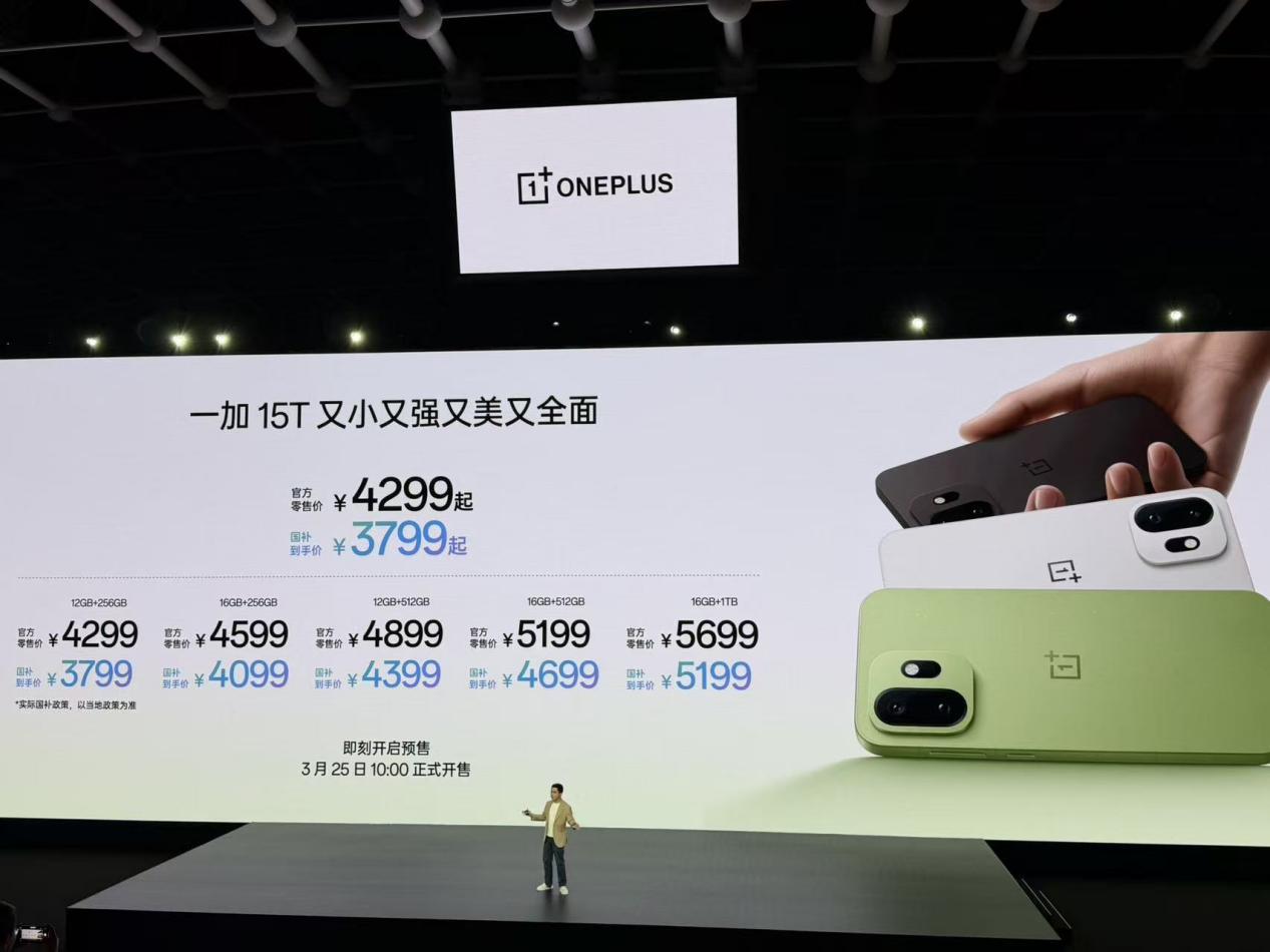 据悉,一加 15T 将于 3 月 25 日上午 10 点正式开售,售价 4299 元起,国补到手价 3799 元起。同时发售的还有磁吸风冷散热器「一加磁吸冰冰卡」、拥有市面最高 40W 功率的「超级冰点磁吸散热器」、「小涡轮 2 代」磁吸无线充,以及与手机配色匹配的巧克力色系「洞洞壳」。